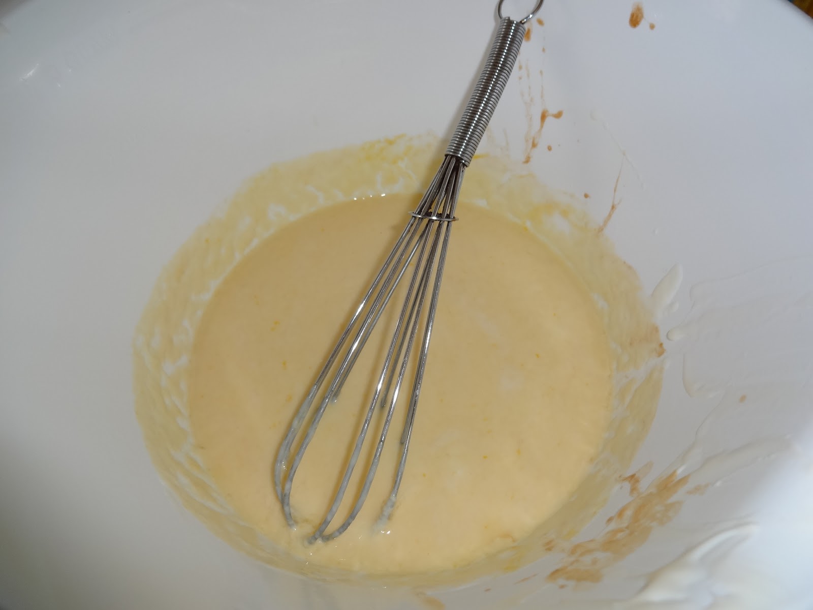 Pictured above- the yogurt, vanilla, egg mixture. Pictured right- cream cheese, sugar, egg, lemon juice mixture, professionally and skillfully blended by Tori!